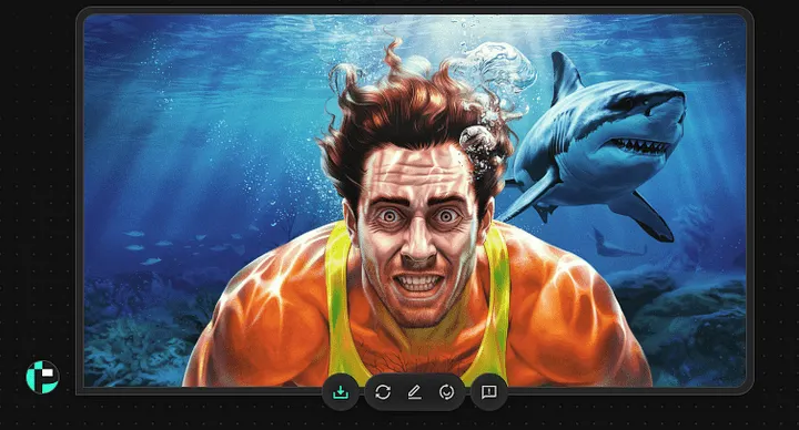 برای مثال، می توانید چیزی شبیه به این تایپ کنید: «مردی که زیر آب شنا می کند و وحشت زده به دوربین نگاه می کند در حالی که یک کوسه به طرز تهدید آمیزی در پس زمینه دیده می شود.» سعی کنید پرامپت رو برای بهینه بودن کار به زبان انگلیسی براش بنویسید.